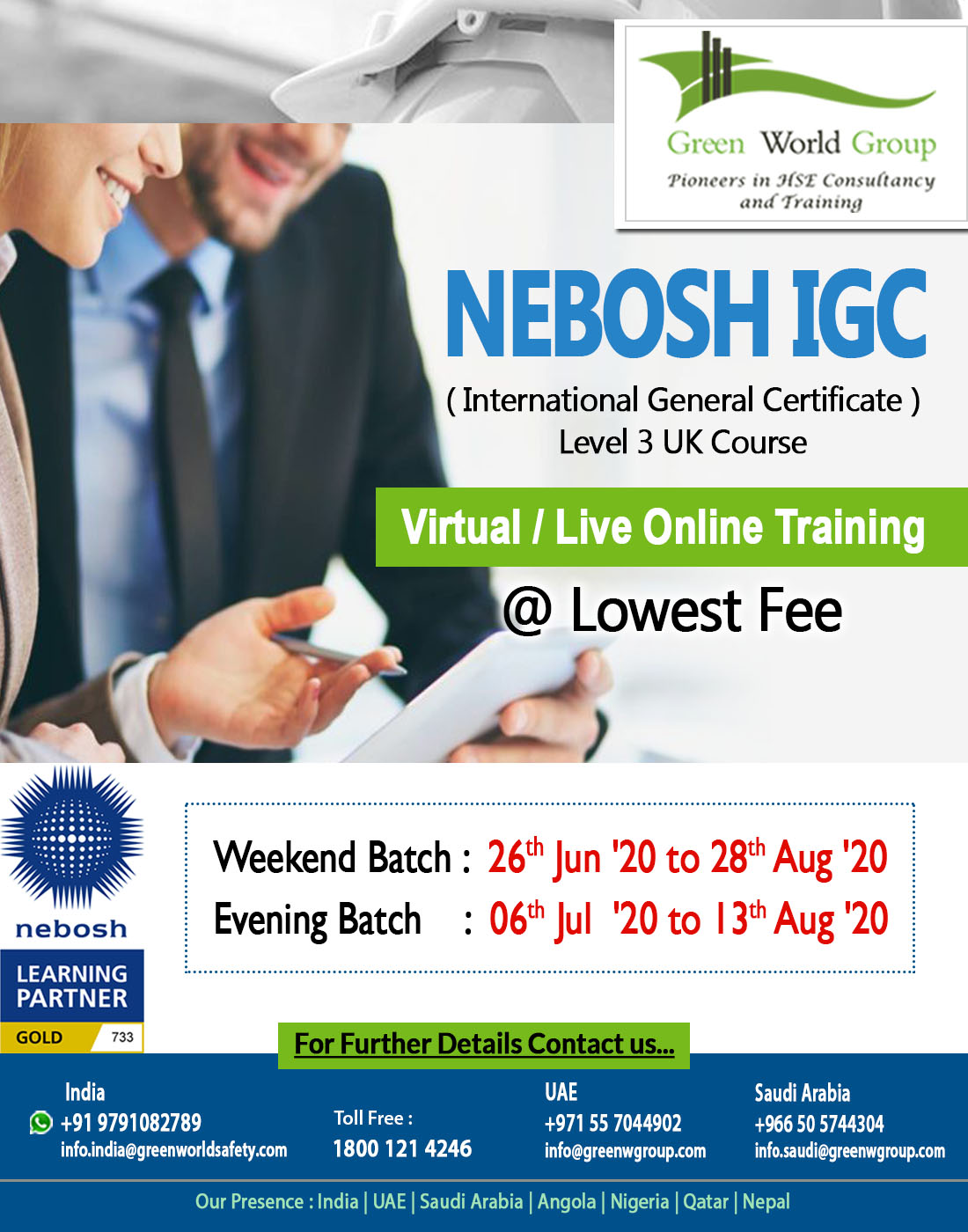 Among the other qualifications in the HSE sector, NEBOSH IGC in UAE is the most popular certification across the world and it provides profound knowledge for the learners who wish to develop their careers in the HSE field. Green World Group is one of the best institutes in Occupational Health and Safety sector that attains the NEBOSH Gold Learning Partners status in Middle-East, India & Africa.